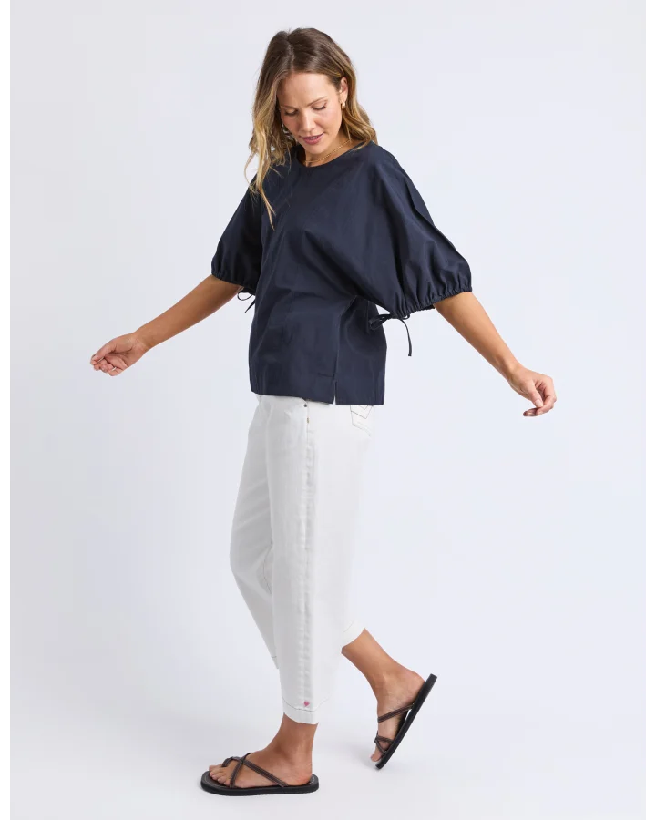 - Add some effortless pretty to your work or play wear with the Marie Top. Featuring a sweet tie at the sleeve and slightly cinched waist for flattering comfort. This 100% lightweight cotton top is a lovely piece for your work to play wardrobe.