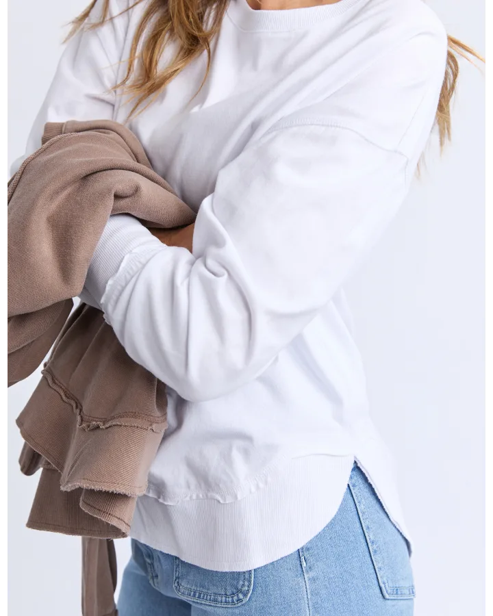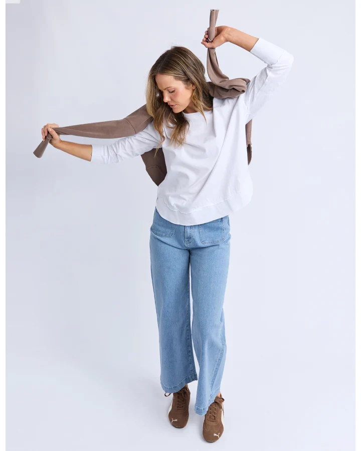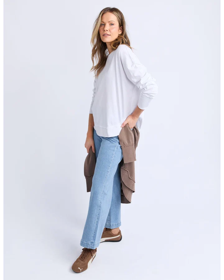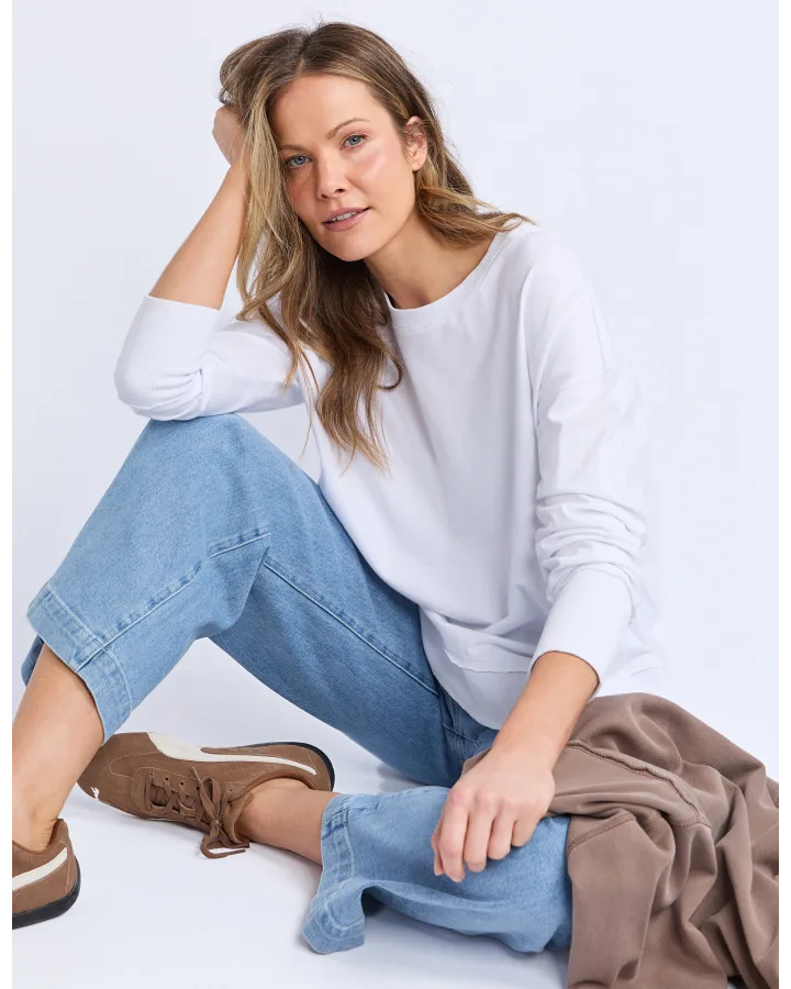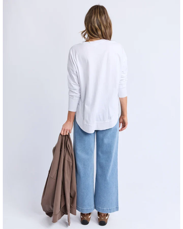 A new crew to the Foxwood range the Farrah Long Sleeve in 100% Fresh Pima Cotton features a classic crew neckline and raw edge detail. This relaxed fit jumper is an easy everyday wear.