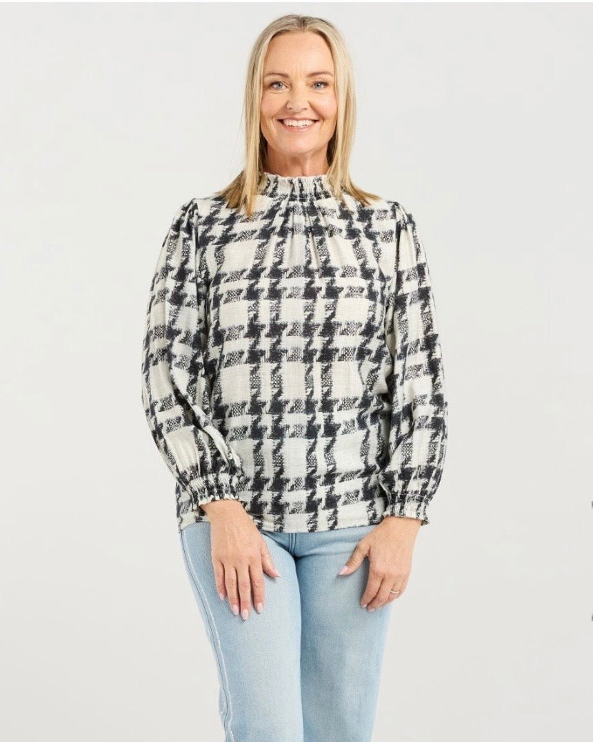 A sleek long sleeve top with a softly gathered, elasticated turtleneck and matching cuffs. Designed for ease and comfort, it adds a touch of understated elegance to any look.