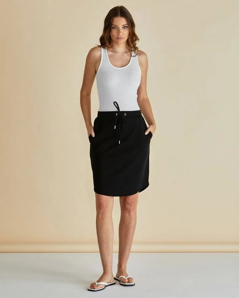 The Retreat Skirt is your easy, go-anywhere piece for relaxed days and beyond. Designed in a soft cotton blend, it features an elasticated drawstring waist, curved hem and above-the-knee length. Its relaxed fit makes it ideal for effortless transeasonal styling. A classic essential with a refined finish.