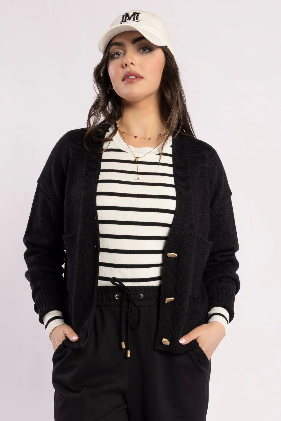 Vespa Cardi - a stylish V-neck double pocket cardigan crafted from a luxurious blend of wool, nylon, and acrylic. This versatile piece is designed to effortlessly complement any outfit, making it a must-have addition to your wardrobe. Its easy-to-wear nature allows you to effortlessly throw it over any ensemble, adding a touch of sophistication and warmth. Elevate your style with the Vespa Cardi - a perfect blend of comfort, fashion, and functionality.