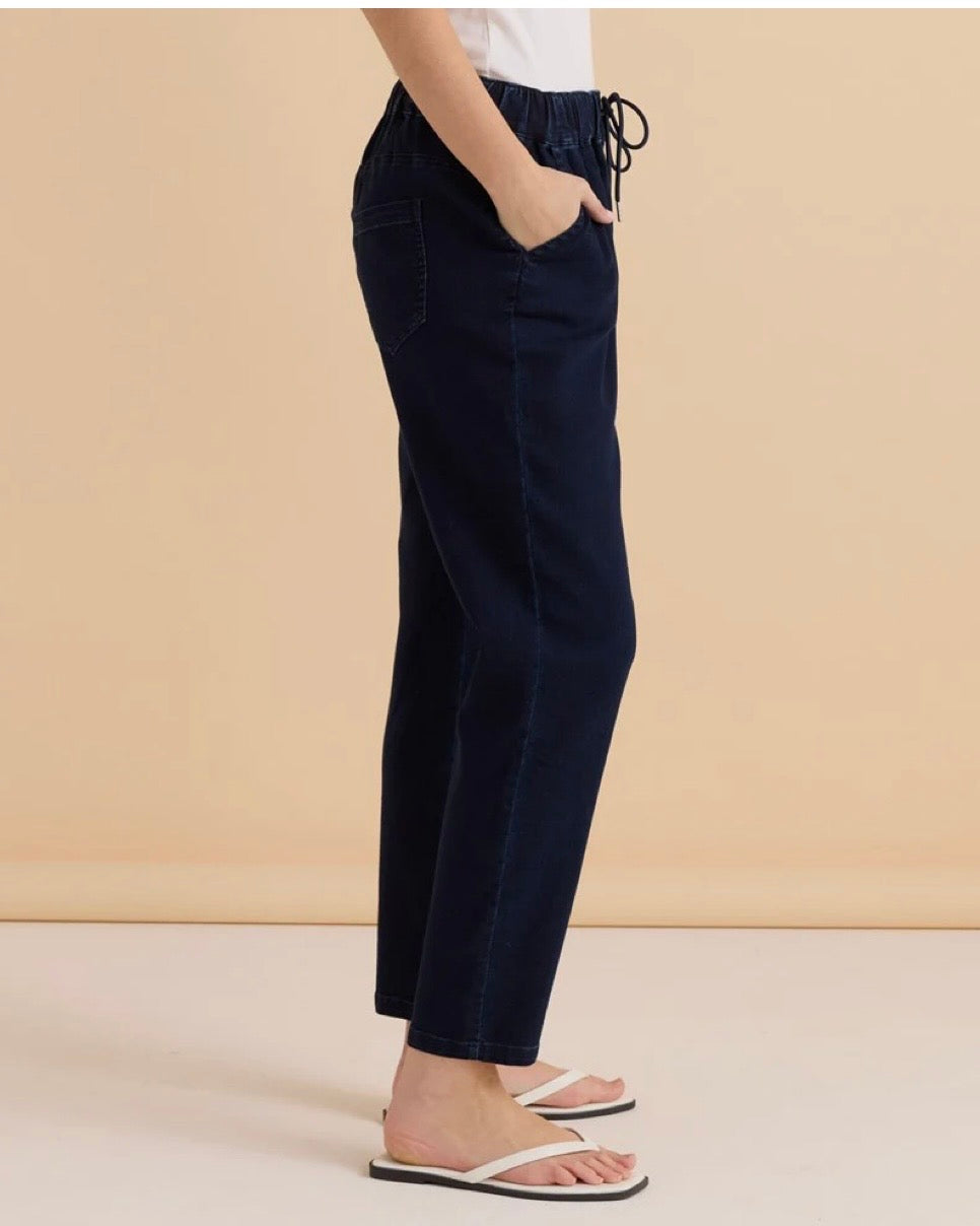 A tapered denim pant designed for everyday comfort. The elastic waistband with drawcord ensures an easy fit. Functional pockets add practicality to a classic style. A comfortable and elevated essential for transeasonal wear.
