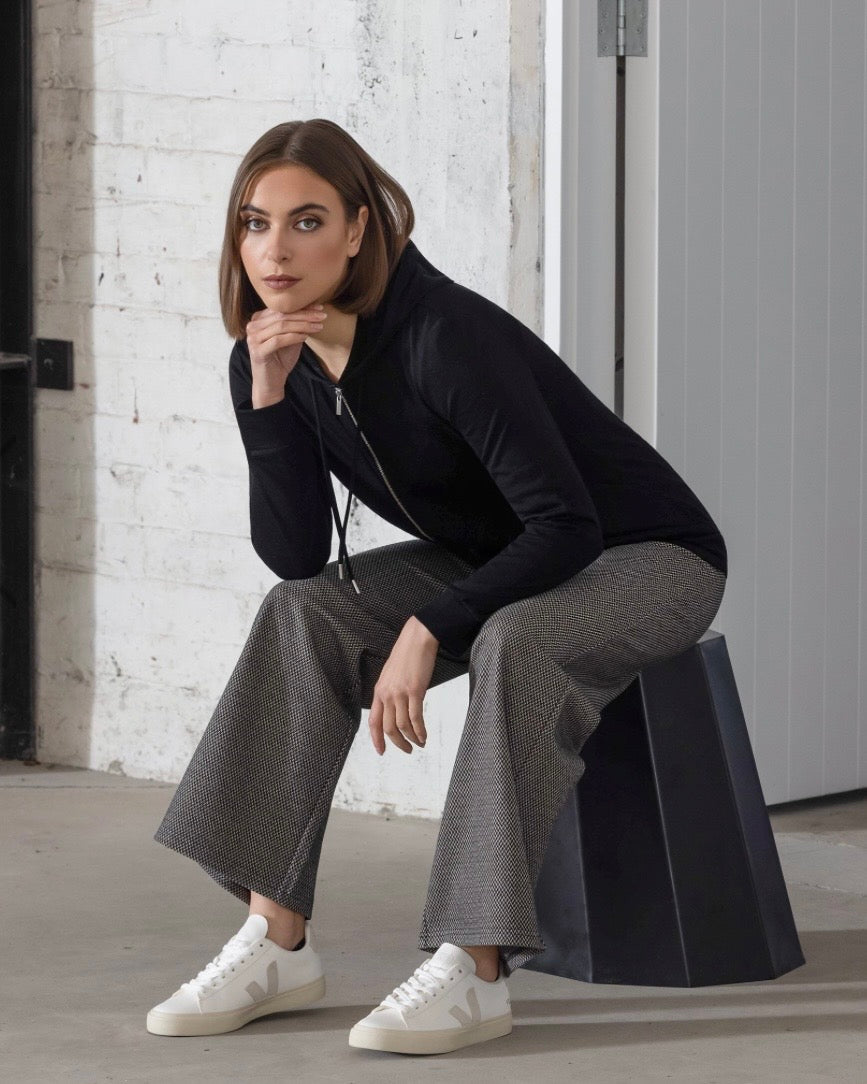 Vassalli Merino Zip Up Hooded Jacket with Scooped Back Hem in Black