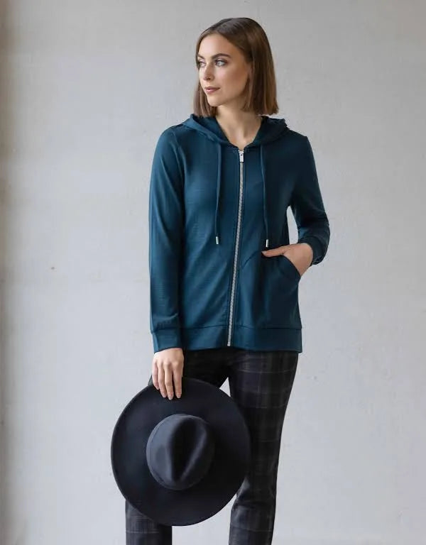 Vassalli Merino Zip Up Hooded Jacket with Scooped Back Hem in Black